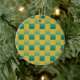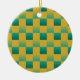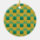 Elegant chequered pattern in green and gold ceramic ornament