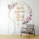 Elevate your 21st birthday celebration with our exquisite "Cherry Blossom 21st Birthday Backdrop," a captivating fusion of timeless floral elegance and modern charm. This large tapestry is transformed into a stunning backdrop that not only sets the scene for unforgettable birthday photos but also embodies the spirit of your special day. The design seamlessly blends the delicate beauty of a sakura wreath with the contemporary allure of gold geometric lines and luxurious golden yellow print. The result is a backdrop that exudes both chic sophistication and vibrant celebration. With a customisable text template, you have the power to make this backdrop uniquely yours. Add your custom date, the birthday girl's name, age, and occasion to create a backdrop that perfectly complements your event. Whether you're capturing precious moments with friends and family or simply revelling in the joy of turning 21, our backdrop provides the ideal setting. Experience the magic of a backdrop that encapsulates both elegance and excitement with our "Cherry Blossom 21st Birthday Backdrop." Let the fusion of pink flowers, modern lines, and customisable details create a memorable visual experience for your celebration.