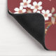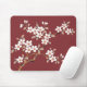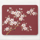 Unique mousepad / mouse mat with a vintage Japanese floral pattern with pink cherry blossoms on a red background.