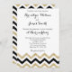 Elegant wedding invitations with custom black text, when couple host with their families, printed on white background with gold (faux, printed as and image) and black chevron pattern