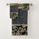 Elegant Chic Black Gold Swirls Monogram Bath Towel Set
