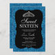 Blue faux glitter elegant simple modern print, Sweet 16 Celebration party invitations. Very classic and sophisticated design for the classy birthday lady. Text can be changed to anything to fit your event. Fonts, font colour and text are completely customisable! Paper shape and type can be customised to fit your budget and taste!