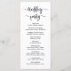 Elegant Chic Boho wedding program is perfect for a modern minimal wedding. All the wedding ceremony information and the wedding party's name listed on this program. Design featuring black cursive hand lettered typography/calligraphy brush font on a white background, with a simple clean look. Including the name of the bride and groom, the date and location, order of service, thank you message, wedding party and an optional "in loving memory" memorial. Easy to customise it.