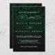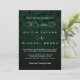 Simple Elegant and Chic wedding invitation with silver text and no decorations on a dark background of green with shades.