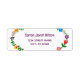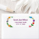 Stylish custom return address label for one person (can be customised for a family as well), with a floral motif illustration around the left and right edges, and with elegant, contemporary handwritten script for the person's name or family name and a modern all caps font for the address.