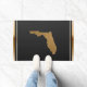 Welcome your guests in style with this classy doormat. The door mat features an elegant design with a black background and rich gold-colored Florida State map. The doormat is lovely for any Florida resident and makes a perfect gift for those with classic refined taste! Available in two sizes for your covered front porch, deck, lanai, laundry room, mud room, garage, or sunroom! Special design requests accepted.