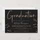 A chic, modern and elegant gold glitter script typography graduation party invitation with glitter sparkle confetti on editable black and a glittery gold background at the back. A luxury and elegant grad party.