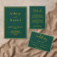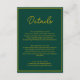 This elegant green and gold wedding details enclosure card is perfect for a modern wedding. the simple design features elegant gold calligraphy on a green background.