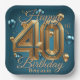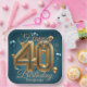Elegant Chic Luxurious Blue and Gold 40th Birthday Paper Plate