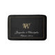 Elegant Chic Monogram Names Newlywed Wedding Bath Mat. Cute stylish personalised black and gold monogrammed bath mat. Classic script for the monogrammed last name initial, the names of the bride and groom and the date on a chic black background. A perfect gift for newly weds, engaged couples or beautiful for your own bathroom. Click personalise this template to customise it with your own names, the monogram initial and date quickly and easily. Matching monogrammed shower curtain and other items in Wedding Gifts Collection in my store. 30 Day Money Back Guarantee. Ships Worldwide fast.