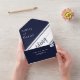 This elegant navy blue wedding invitation is perfect for a modern wedding. the simple design features elegant white calligraphy on a blue background.