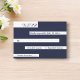 This elegant navy blue and white RSVP card is perfect for a modern wedding. the simple design features elegant blue calligraphy on white stripes on a navy blue background.