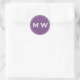 Elegant Chic Purple Circle Two Monogram Initial Classic Round Sticker