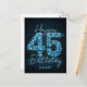 Elegant Chic Sapphire Blue and Black 45th Birthday Postcard