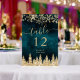 Elegant chic script Gold and Teal Winter Christmas Table Number