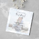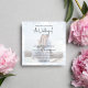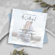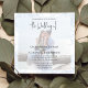 This design features an elegant, chic, classy modern minimal, dusty blue, simple elegant calligraphy script, boho bohemian, a formal, with a formal floral, photo overlay, and rsvp with wedding details. QR code