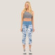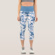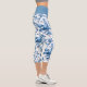 Elegant Chic Vintage Blue Rose Floral Capri Leggings