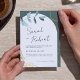 Announce your wedding with this elegant eucalyptus Save the Date design featuring watercolor greenery and subtle gold accents. The natural leaves add a fresh, organic touch, while the golden details bring timeless elegance and sophistication.