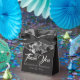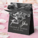 Beautiful white callas and chincherinchee floral black and white photograph on charcoal grey background, personalised with grey and white lettering. A stylish classic modern party/wedding favour.