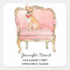 Elegant and feminine dog lovers address label sticker featuring a watercolor illustration of a chihuahua sitting on a pretty pink chair.