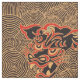 Elegant Chinese Dragon Fabric .With a black background colour. The dragon is red with gold circles around it.