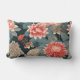 Elegant Chinoiserie Teal Peach Florals Lumbar Cushion