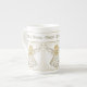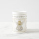Elegant Christmas china to serve your holiday guests with a golden filigree Angel of Grace framed by golden sunbeams. There is gold typography over the design spelling, "Angel of Grace". The spiritual design is repeated three times around the mug/cup.