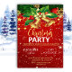 Formal, elegant red Christmas party invitation with golden Christmas bells and ivy on a red background and gold sparkly twinkles.