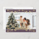 Elegant violet photo Christmas postcard featuring gold holly and berries. Easily personalise this Christian Christmas photo postcard with your photo, the family name and personal message. English violet and gold Christmas blessings holiday postcard.