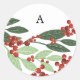 Elegant Christmas Botanical Monogram Envelope Classic Round Sticker