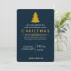An invitation to a festive Christmas dinner party hosted by Samira and family, taking place on December 24th at 7:00 PM. The design features a classic gold Christmas tree on a dark blue background, embodying a sophisticated holiday theme.