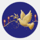 Custom stickers for the Christmas holidays, veteran memorial day & christian events. Change the colour of the background and add text to make it unique. This sticker has a graphic of a gold dove of peace flying with its wings arched upwards, carrying an olive branch in its beak. It is flying across a delicate, ornate gold horizontal swirl which has tiny snowflakes falling around it and three red candles which are burning brightly. IDEAL FOR: Christmas holiday invitations, Christian functions & events & peace gatherings & concerts. CUSTOMIZE IT: Feel free to change the colour of the background, to add text and photos or your company logo; and to re-size, re-position or replace the image with one of your own. MATCHING PRODUCTS: To view the full range of merchandise in this line, visit our homepage and select the "Major Holidays", "Christmas season" categories. STORE ADDRESS: http:// www.zazzle.com/mensgifts* COPYRIGHT: Robin Wood - mensgifts.