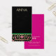 Festive add logo earring display holder with two printed hole "markers". Black background with green, magenta and gold ornament border.