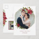 Elegant Christmas Geometric Wreath Holiday Photo Postcard with classic red and green watercolor poinsettias and a modern geometric gold foil style frame. Add your own photos to the front and back for a truly personalised card. Easy to customise with text, fonts, and colours; you can also easily change the greeting on the back or delete it to add your own handwritten sentiment. Created by Zazzle pro designer BK Thompson © exclusively for Cedar and String; please contact us if you need assistance with the design.