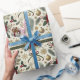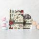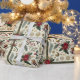 This festive Christmas gift wrap features a seamless 2D design with no gradients or shadows, perfect for any holiday occasion. The pattern includes delicate snowflakes, holly branches, golden ornaments, and elegant ribbons, set against a pearl white background. Designed with sophistication and a timeless color palette of gold, deep red, and forest green, this wrapping
