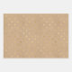 Elegant Christmas Wrapping Paper Sheets featuring three different faux gold patterns on a Kraft paper background. Poinsettias, Stars and Ginger Bread Cookies.
