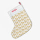 Elegant Golden Christmas pattern on white Christmas stocking. Name can be personalised.