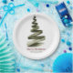 Elegant Christmas Green Tree Watercolour Paper Plate