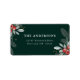 An elegant Christmas return address label featuring elegant winter greenery and berries on a dark green background.