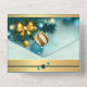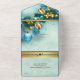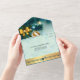 Elegant all in one tear-away Christmas holiday party invitation featuring a festive pine tree branch with baubles and sparkling lights.