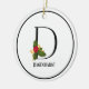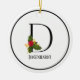 Elegant Christmas Holly Monogram Letter D Ceramic Ornament