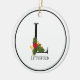 If your family monogram is L, then this ornament is for you! This beautiful design, trimmed with Holiday holly and ribbon tied into a bow, is offered in traditional colours of the season...and adorns this ornament, making it a timeless keepsake and fun addition to your holiday tree decor! Personalise with your family name. You can customise further, if you would like to change the background colour. This ornament also makes a wonderful Christmas gift! Happy Holidays!