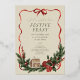 Invite your guests in style with this Elegant Christmas Invitation Card, designed with a classic festive aesthetic featuring holly leaves, winter florals, a cozy Christmas home illustration, and a vintage holiday ribbon frame. This card is perfect for Christmas dinners, holiday parties, festive feasts, and winter celebrations.