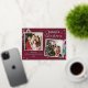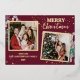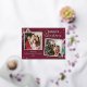 Share your holiday cheer with this vibrant burgundy Christmas design featuring a trendy 2-photo collage and playful candy cane illustrations. The elegant gold sparkle accents and sophisticated typography create a joyful and memorable way to send your love to family and friends.