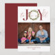 Elegant Christmas Joy to the World Wreath Holiday Photo Card featuring your custom photo and text with our modern holiday wreath and a wonderful Christmas carol! Easy to customise with your own text, fonts, and colours.