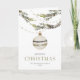 This elegant Christmas card features a minimalist design with a single silver ornament hanging under greenery. The delicate branches and muted tones give it a sophisticated, festive feel. "Merry Christmas" is printed in stylish lettering, creating a warm and welcoming holiday greeting.