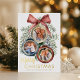 Add your own photos to this unique holiday card, featuring Christmas ornaments with photos inside hanging from pine sprigs with a bow on top. Real gold foil for the text and the frames around the photo add to the elegance. For additional matching products or design questions, please contact me through Zazzle Chat.