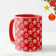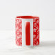 Elegant white Christmas pattern on red background. Perfect mugs for Christmas season!