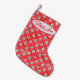 Show your holiday spirit with this elegant Christmas stocking. It has a pattern of elegant ornaments, ice skates, red ribbons, and polka dots on a red background.