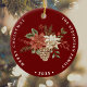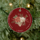 Elegant Christmas Poinsettia Dark Red Ceramic Ornament